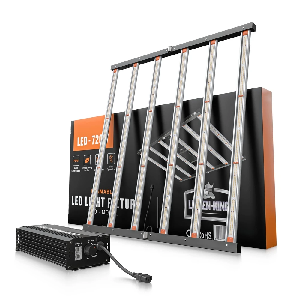 Die LUMEN KING LED Grow Light 720W Eco Line ist eine leistungsstarke Vollspektrum-LED-Growlampe für professionelle und ambitionierte Indoor-Grower. Mit einer Effizienz von 2,7 µmol/J und einer starken PPF-Leistung von 1944 µmol/s liefert sie maximale Lichtausbeute bei gleichzeitig optimiertem Energieverbrauch. Das ultraflache, faltbare Design ermöglicht eine einfache Installation, während die passive, lüfterlose Kühlung für einen geräuschlosen Betrieb sorgt. Ideal für Anbauflächen bis 150 × 150 cm – geeignet für Wachstums- und Blütephase.